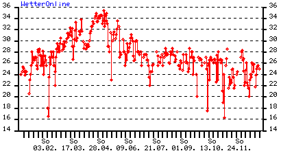 Morelia, Michoacan, Mexiko - Tagestiefsttemperaturen: |