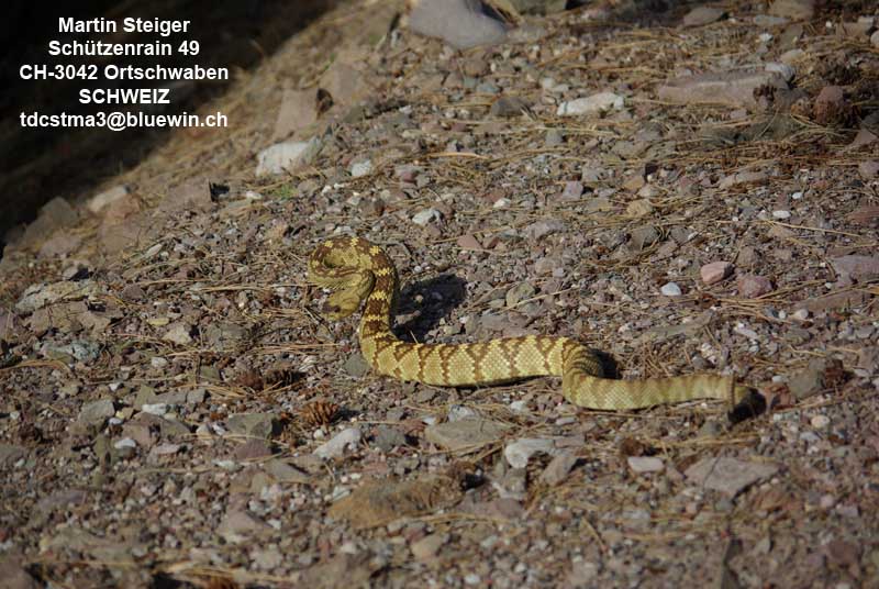 P.S.: Schickt uns doch einfach eingescannte Fotos von euren Schlangen mit Angaben zur Art und zum Geschlecht, sowie euren Namen bzw. eurer E-mail Adresse. Die Bilder stellen wir dann im Bildarchiv von "klapperschlangen.de" aus; natürlich mit eurem Copyright und eurer E-mail versehen. Bilder schicken an: mail@klapperschlangen.de |